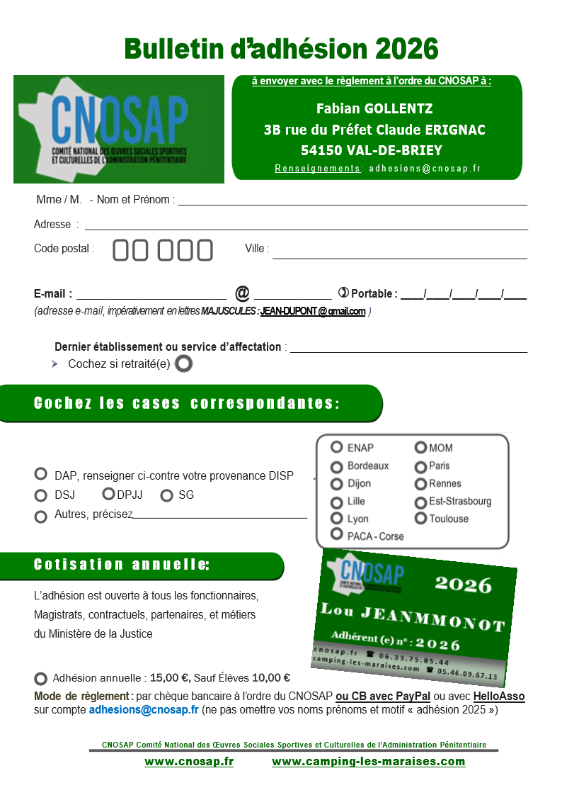 Le CNOSAP (Comité National des Œuvres Sociales, Sportives et Culturelles de l’Administration Pénitentiaire), créé en 1969, est la seule association nationale de l’administration pénitentiaire.