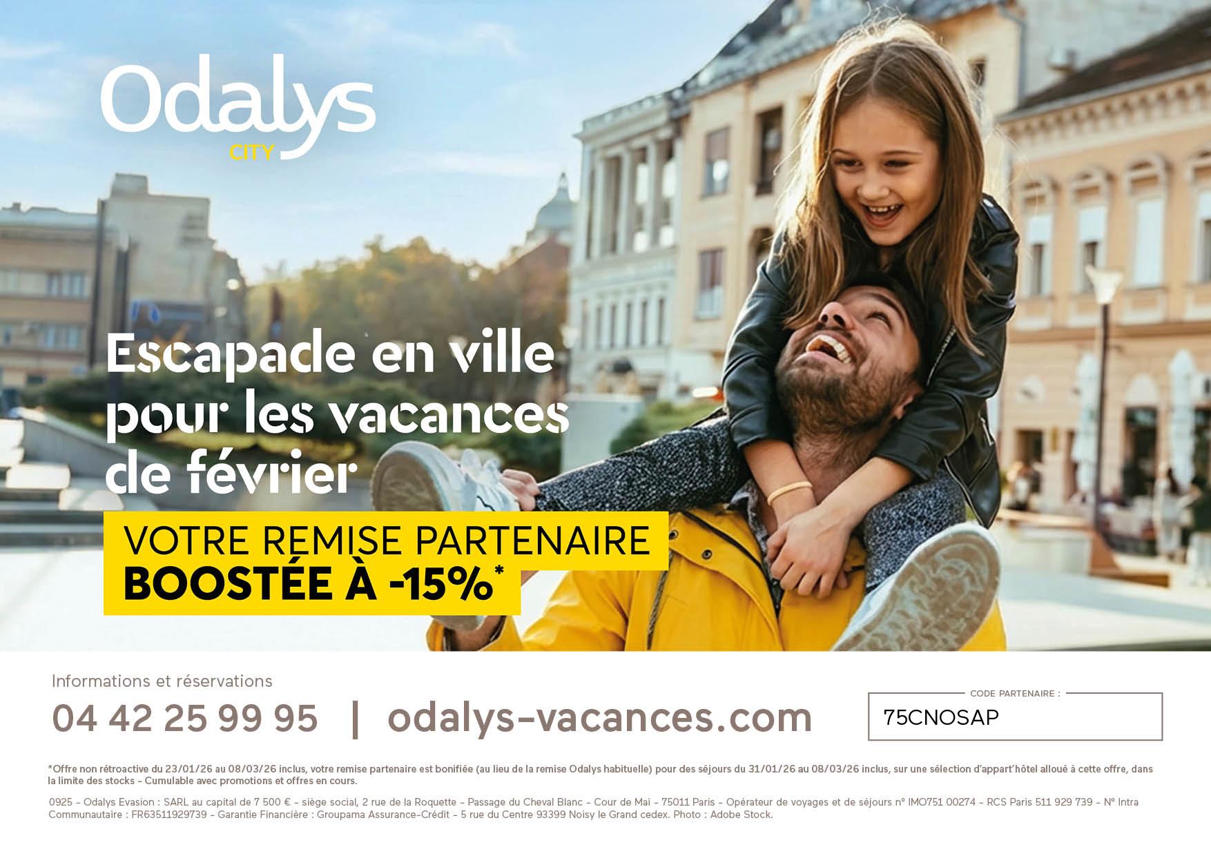 À l’occasion des vacances de février, le CNOSAP s’associe à Odalys Vacances pour vous proposer une offre exclusive idéale pour une escapade urbaine en famille ou en duo.